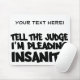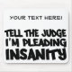 "Tell the judge I'm pleading insanity". Add your own text / image on the other side. See my store for more items with this design.