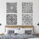 Make your home decor stand out with this captivating Insect Mandalas Art Set, featuring four square prints meticulously hand-drawn in intricate detail. This collection showcases mandalas inspired by nature's wonders: the graceful butterfly, the industrious bumble bee, the agile grasshopper, and the resilient beetle. Each piece serves as a beautiful and interesting focal point, adding a touch of sophistication to any room. Crafted in elegant white, these prints offer endless versatility – allowing you to personalise your space by choosing a background colour that complements your home decor seamlessly (Simply enter the Design Tool to change your colour). Bring the allure of nature indoors and transform your surroundings with these stunning insect mandalas. Enhance your living space today and let your walls tell a story of elegance and artistry. Original artwork by Tiffany Duffy