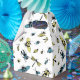 Insects, nature's flying creatures and crawling bugs, in blue and yellow on solid white background.