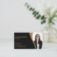 Luxury Professional business card for Real Estate Agents and Realtors, with key and a house in gold colour. You can add or insert your photo