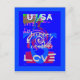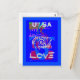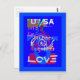White: Employed for the "USA" and "LOVE" text, offering a strong contrast against the blue background, ensuring the words stand out prominently.