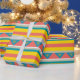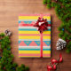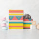 Inspiration is a funky pattern in yellow, pink, blue and white colorful stripes and blue, yellow triangles.