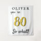 Inspirational 80th Birthday Party Backdrop. Funny and inspirational quote 80 so what for him or for her. Use the tapestries as a backdrop for the 80th birthday party. Personalise it with your name and age.