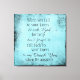 Inspirational Christian Quote (by Vikkelynne) Message Canvas Print. With a sky blue background and rustic edge border in black, this canvas print features the saying, "When you fall to your knees and ask God for help, don't forget to fall back to your knees and say Thank You when He answers." Gratitude.