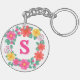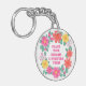 Customise this keychain with your monogram on the back and your own inspirational, motivational quote or affirmation on the front. It features a modern flower design with pink, orange and yellow flowers.