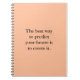 Perfect for school or work this peach-coloured notebook is motivational. The cover features an inspiring quote, "The best way to predict your future is to create it," in a simple black contemporary font. This notebook is perfect for jotting down your thoughts, dreams, and plans, serving as a daily reminder to take control of your destiny and shape your own future. Its aesthetic design makes it not only functional but also a stylish accessory to carry with you. This notebook also makes a perfect gift, especially for back to school or a new job!