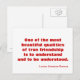 Postcard Inspiration about friendship quoting Lucius Annaeus Seneca. One of the most beautiful qualities of true friendship is to understand and to be understood.