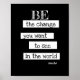 This inspirational Gandhi quote poster modern chic typography design has text Be the change quotation in bold black and white for wall art for decor in home or office. Gandhi quotes. Original design copyright Ann Powell all rights reserved.
