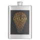 The product is a good size and came exactly as it was pictured. The lid is not attached to the flask, which could be dangerous on drunken nights... The print came out surprisingly well and looks very sharp. Would definitely recommend.