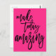 Send someone encouraging words with the motivational quote Make Today Amazing in an artsy script in black on a hot pink background.