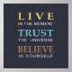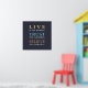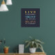 An elegant and modern typography design with a dark blue background and yellow, blue and brown text, with a message to remind to live in the moment and trust that everything is going to be all right. This gift would look great in any home or office.