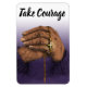 Picture of a person wearing purple sweater, hands folded with cross hanging over them.This inspirational, photo magnet will keep your papers in place and is a great reminder to take courage in the midst of life's challenges.