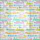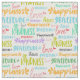 Multi colored fabric with a pattern of inspirational words and sentiments--happiness, kindness, gratitude, and love--in charming fonts and fun colors.