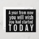 Motivational postcard - A year from now you will wish you had started today. Our black postcard features bold, contemporary white typography and is a great reminder for anyone who needs a bit of inspiration. Inspire your friends, family, co-workers and keep extras for yourself. Designed by Donna Gotlib for GotDonna. Thank you for stopping by.
