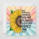 Pretty hand drawn yellow sunflower with a magical background. Inspirational quote colourful art. Retro colours.