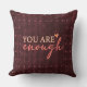 Add warmth and positivity to your space with this You Are Enough Motivational Throw Pillow. Featuring an elegant burgundy background with stylish script typography and a subtle heart detail, this 12x12 square cushion is a beautiful reminder of self-worth and confidence.
