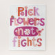 A cute pink, red and purple, hand lettered quote that says, "Pick flowers not fights." A playful reminder in the home for the kids to be nice. Designed for you by Blackberry Boulevard.