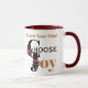 This is an inspirational Renew Your Mind Choose Joy mug with black floral monogram letters C and J. The quote is written in black and antique brass colours. This mug will encourage you that joy is a choice no matter what you are going through. This would make a lovely encouraging gift for a friend or family member.