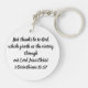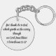 Picture of a woman sitting pensive in a boat. Be reminded with this circular inspirational key chain that God is always at work in our lives.
