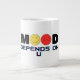 Take control of your day, one sip at a time. This oversized jumbo mug features the powerful reminder: "Mood Depends On U," accented with minimalist yellow happy and red sad face icons. Designed for those who need a large dose of caffeine and a positive mindset, this mug is perfect for cozy mornings, stressful office days, or as a supportive gift for a friend.