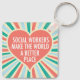Social Workers make the world a better place. A beautiful, inspirational social work keychain gift for a social services manager featuring a pretty retro heart and cheerful colors.