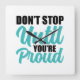 Fuel your ambition with this powerful motivational quote. "Don't Stop Until You're Proud" is a declaration of determination and a reminder to keep pushing towards your goals. The dynamic mix of bold and script fonts makes this a stylish and impactful design for anyone dedicated to success and personal achievement.