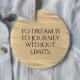 Share a bit of inspiration with this colourful button, which features the uplifting words "To dream is to journey without limits" on golden waters!