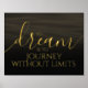 Add a touch of inspiration to your walls with this foil print, which features the uplifting words "To dream is to journey without limits" on sepia-toned waters (or shifting sands), fading to black!