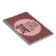 Notebook with quote about treasure in a circle graphic with torn edges. A flower decorates the design. PInk/Purple hues. Add some warmth to your book bag or office with this lovely design.