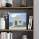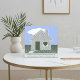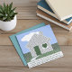 A personalised congratulations card for a new homeowner, featuring a charming design that celebrates the joy of a new home. The centerpiece is creative typography showcasing heartwarming phrases about home, beautifully overlaid on a picturesque photo of a house adorned with a heart, a cheerful bird in the front yard, and a vibrant blue sky. The design also includes a customisable typography field, allowing for personal messages or other unique customisations to make the card even more special.