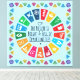Command attention with optimism! This gallery-wrapped 40x40" canvas print transforms blank walls into inspiration hubs with its bold declaration: "The Future is Bright Full of Opportunities" with Global Sustainability Goals (17 SDGs) design with artistic diamond border design. Professionally printed on museum-grade canvas with vivid, fade-resistant inks, it arrives ready to hang. Perfect for: