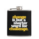 Add a touch of inspiration and motivation to your favourite drink with this flask, which features the words "change is but the shorter word for challenge."