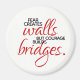 Add a touch of inspiration and motivation to your kitchen with this magnet, which features the words "fear creates walls but courage builds bridges" in elegant flowing script and sans serif lettering.