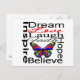 I was thrilled to receive my order and just loved this postcard! I love anything with butterflies and It contains all the words that are special to me. This one has some bright pretty colors.and I was very pleased at how the printing came out! I am very happy with the quality as well!