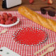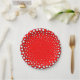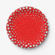 This design is inspired by the feathers of red pheasant bird. These paper plates are perfect for your wedding decor and party supplies.it features tiny white circles alligned radially on a red hot background giving this product a very vibrant look.