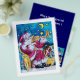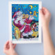 Musical ,whimsical and artistic watercolor painting with vibrant red ,blue, yellow, white colours by Bulgan Lumini (c).