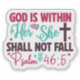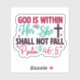 Colourful stickers featuring a powerful Bible verse that emphasises faith and strength. The vibrant design includes the text God is within her, she shall not fall, blending artistic elements with uplifting sentiment, perfect for personal or gift use.