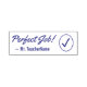 This motivating rubber stamp design features the message "Perfect Job!" and a personalised educator's name. It also features a decorative checkmark. It could be used by a teacher, educator, or tutor when marking assignments, to indicate that a student has done well.