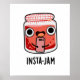 Insta-jam Funny Social Media Jam Pun features a cute jar of jam holding his cell phone. Perfect pun gift for family and friends who love cute social media puns.