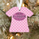"Instant Clogger: Just Add Music." This cute shirt-shaped ornament design for clog dancers features an oval-shaped banner in shades of pink, purple and white with music notes and stripes. The background is light pink with white polka dots. It's a pretty, double-sided ornament for the clog dancing fan. See variations and more original clogging designs at our ClogDance shop link!