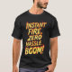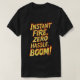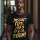 A digital illustration of the phrase Instant Fire, Zero Hassle Boom! with stylised, fire-shaped letters. The graphic is set against a white background.