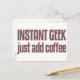 In order to get your geek to function correctly, you must first insert a mug of delicious hot coffee.