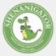 Leprechaun dragon with pot of gold and wooden bat cartoon.
