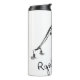 An insulated bottle with a drawing on the felt of a raptor who lifts the wheel before his bicycle.