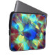 Intense blue digital flower contrasting with brown laptop sleeve