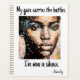 Stay organised with confidence using this planner inspired by Ferocity. The intense pixel portrait reflects quiet strength. Features the quote: "My gaze carries the battles I’ve won in silence."