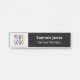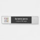 Personalise this interchangeable office door name plate with your own company logo, name, job title, or other custom text. You can customise the background colour to match your corporate colours. Available in silver, black, or rose gold metal colours in two sizes – standard 2 inch x 8 inch or long 2 inch x 10 inch – and in two styles – as a door name plate or a desk name plate. No minimum order quantity and no setup fee.