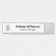 Personalise this interchangeable office door nameplate with your company logo, name, title, or other custom text. You can customise the background colour to match your company's colours. Available in two sizes - standard 2" x 8" or long 2" x 10" - and two styles - as a door nameplate or office nameplate. There are no minimum order quantities and no setup fees.