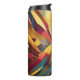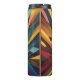 A vibrant array of bold, geometric shapes converges at the centre, forming a symmetrical and colourful composition. The piece uses a variety of hues, ranging from warm yellows and oranges to cool blues and purples.