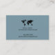 A business card for a travel agent... with the image of a black map of world on grayish blue background.